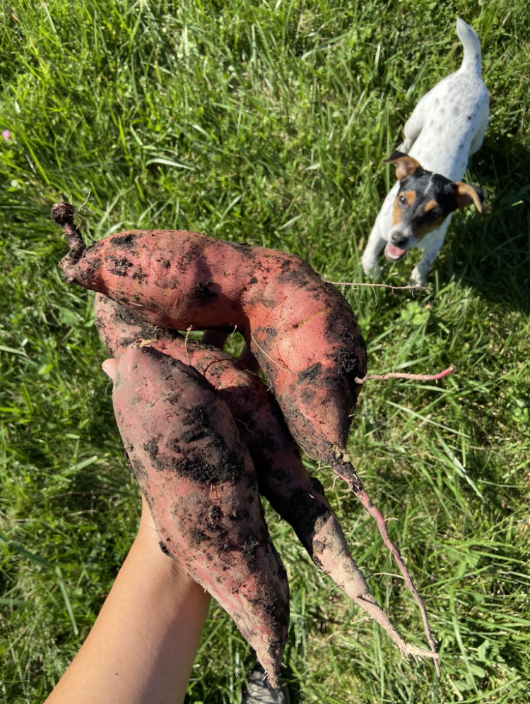 Some of our primary crops are raspberries, rhubarb, garlic, sweet potatoes, tomatoes, peppers, and ginger, among many other crops that we grow on a more limited basis.